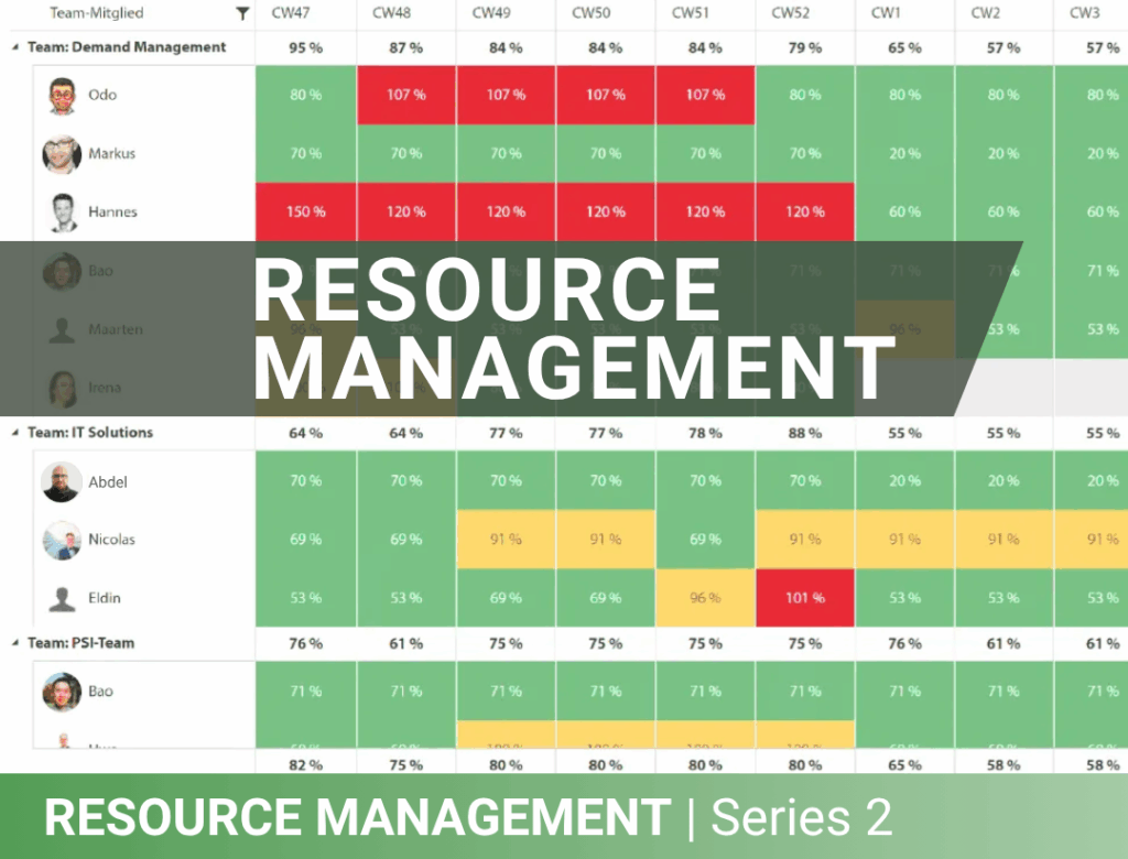 In der Praxis bedeutet das: verschiedene Perspektiven müssen zusammenfinden. Ein Projektleiter braucht den Überblick über laufende Projekte und die angefragten Ressourcen. Teamleiter müssen den Auslastungsgrad ihrer Mitarbeitenden kennen – um Überlastung wie Leerlaufzeiten zu vermeiden. Mitarbeitende selbst wollen verstehen, wie ihre geplanten Urlaube oder Fortbildungenmit Projekteinsätzen und Aufgaben ein Gesamtbild ergeben. Und auch Betriebsrat, Controlling, Finance oder HR benötigen verlässliche Daten, um ihre Aufgaben erfüllen und Entscheidungen auf einer gemeinsamen Grundlage treffen zu können.